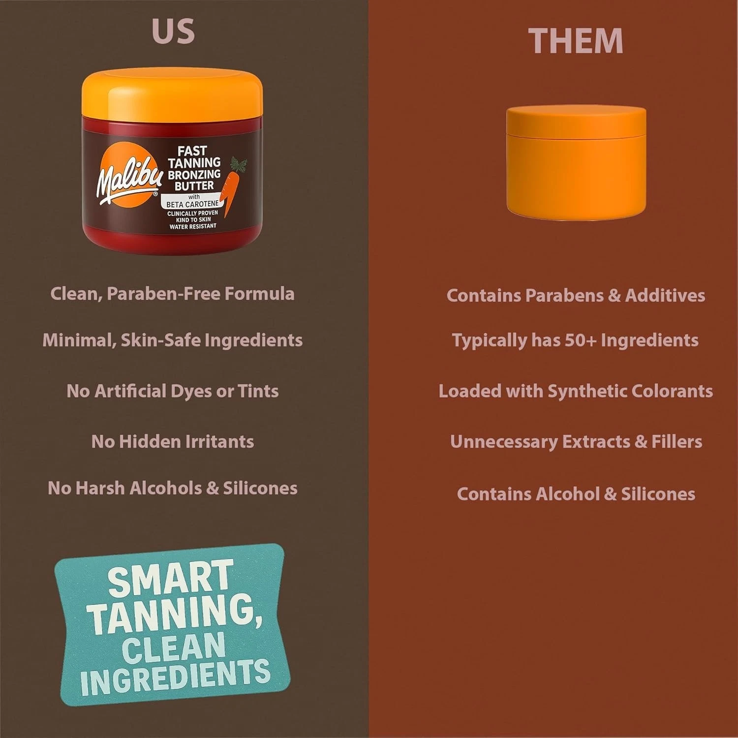 • Bronze and Glow: Rapidly build a bronzed glowing tan with Malibu’s Beta Carotene moisturising Body Butter